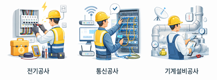 Àü±â ¹× °èÀå°ø»ç, Á¤º¸Åë½Å°ø»ç, ±â°è¼³ºñ°ø»ç ¼öÇà